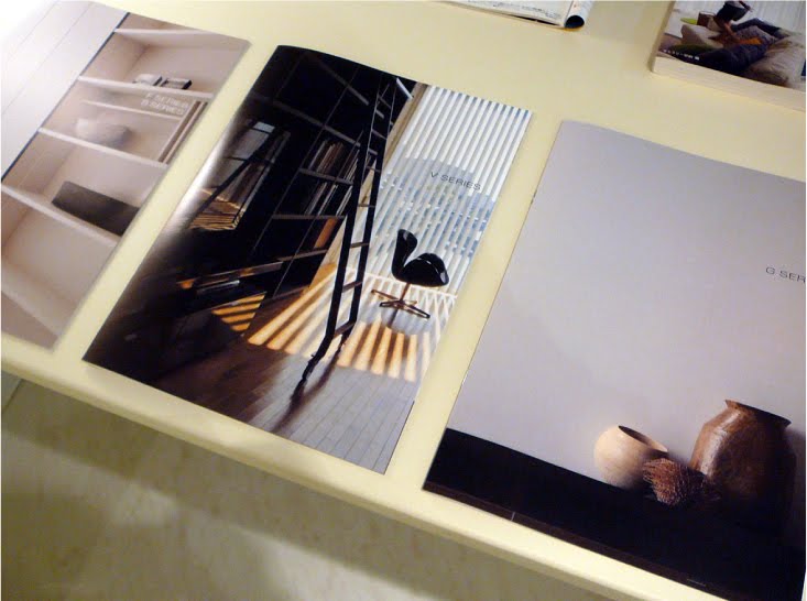 と、請け合ったのですが、どうもうまくいきません。サイズが大きくなることは問題ないのですが、正方形の判形を考えて撮った写真をA4判の比率の紙面に構成することに無理がありました。やはり当初考えていたコンパクトサイズと同じ比率、A4判のモジュールの正方形がいいと判断。このサイズと、当初のコンパクト判、途中までやってみたA4正寸判の三つの形態案を用意して打ち合わせを行いました。コンパクトサイズもカワイイと好評でしたが、どれが一番効果的かを判断基準にして、GSの大谷さん、柴田さん、目黒さんと全会一致でA4モジュールの正方形判に決定しました。このカタログ、IFFT/インテリア ライフスタイル リビングの時期に合わせて完成する予定です。GS各店の店頭で、新しい3分冊カタログと一緒に、どうぞ手にしてください。