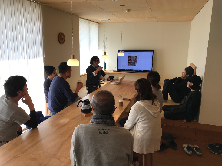 すっかり月イチで定例となった丸晴工務店の打ち合わせ。今回も川崎に伺って打ち合わせを行う予定でしたが、出発直前に急遽変更。濃沼さんがエーランチ に来てくれることになりました。その理由は、サインデザインについて看板の仕様を検討するために、青山散歩ワークショップを実施することになったからです。