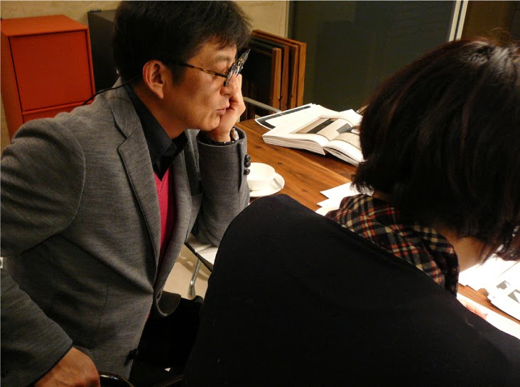 前回の打ち合わせから、宅配便や深夜の篠田実弾便を使って何度かやりとりを重ねたGSのプロジェクト。校正戻りのミーティングをGS銀座で行いました。